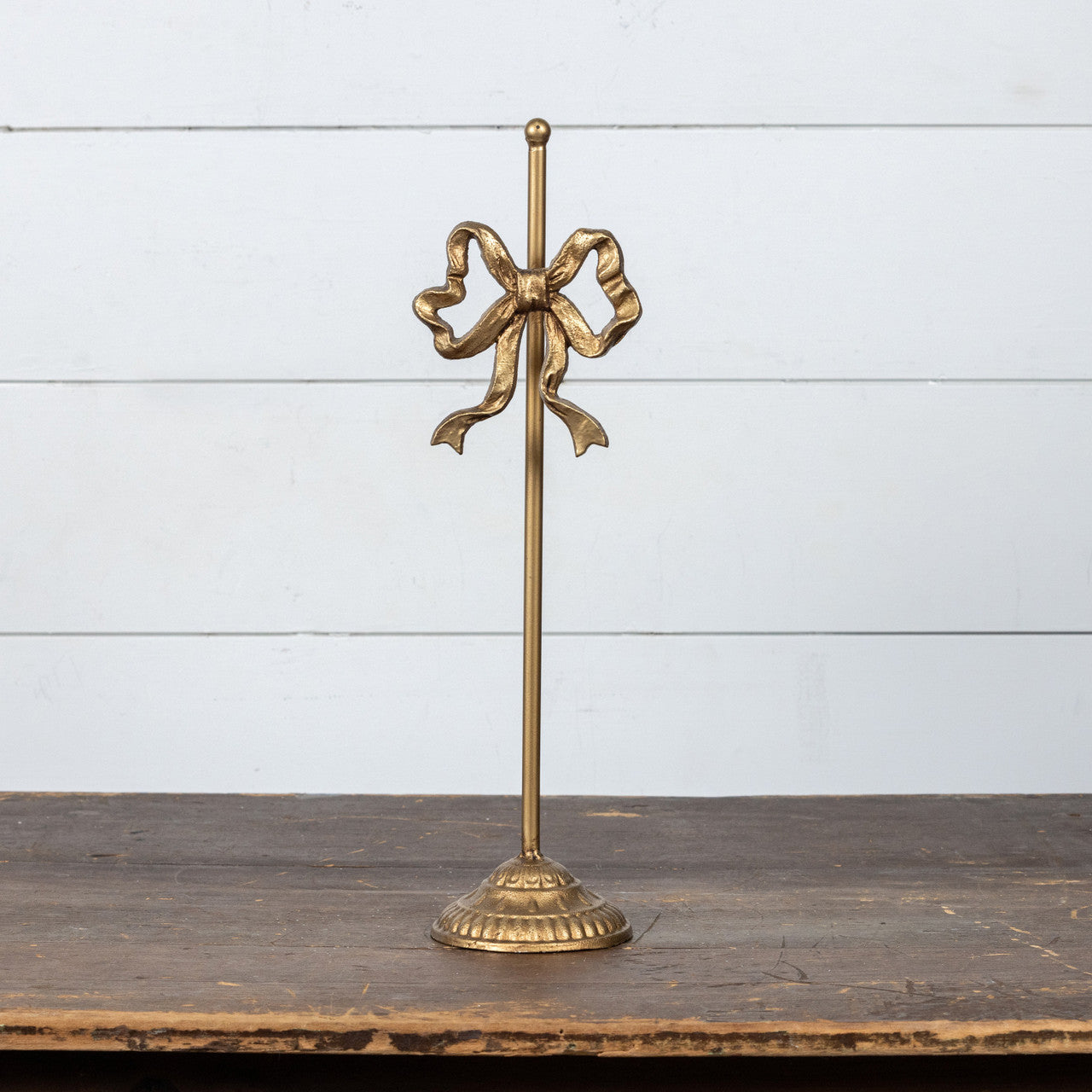 This 18.25" gold wreath stand with bow offers a refined display solution for your seasonal wreaths. Crafted in a sleek gold finish, it provides sturdy support while adding a touch of elegance. The decorative bow enhances its visual appeal, making it ideal for showcasing wreaths in both indoor and outdoor settings with professional style.