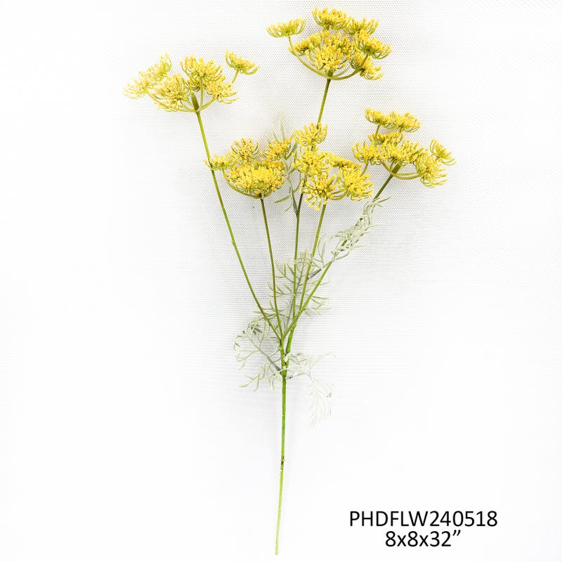 • Blooming Dill Yellow features lifelike faux dill stems with vibrant yellow hues, perfect for adding a touch of natural elegance to your floral arrangements or home decor. Expertly crafted to mimic the delicate texture and form of real dill, these stems provide lasting beauty without maintenance. Ideal for designers and enthusiasts seeking authentic detail in artificial greenery.