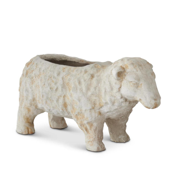 Crafted to evoke rustic charm, the Cream & Rust Weathered Sheep Container offers a unique blend of farmhouse appeal and functional design. Its weathered finish showcases a textured cream and rust patina, adding authentic aged character to any garden or indoor plant display. This container provides a sturdy, decorative home for your plants while enhancing your space with a subtle countryside aesthetic. Ideal for gardeners seeking a distinctive statement piece, it combines durability with timeless style for lasting enjoyment.