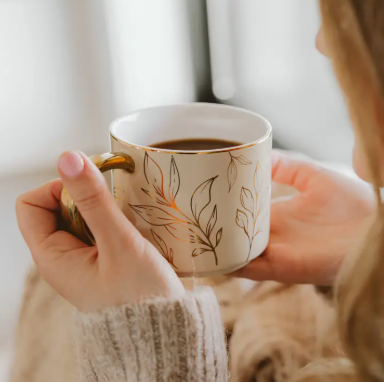 Add a touch of elegance to your Fall assortment with our Gold Leaves Mug. Featuring delicate leaf motifs and luxe gold accents on the rim and handle, this timeless design is perfect for everything from pumpkin spice lattes to cozy morning coffee. A beautiful addition to Autumn, Thanksgiving, and seasonal gifting displays your customers will be drawn to.