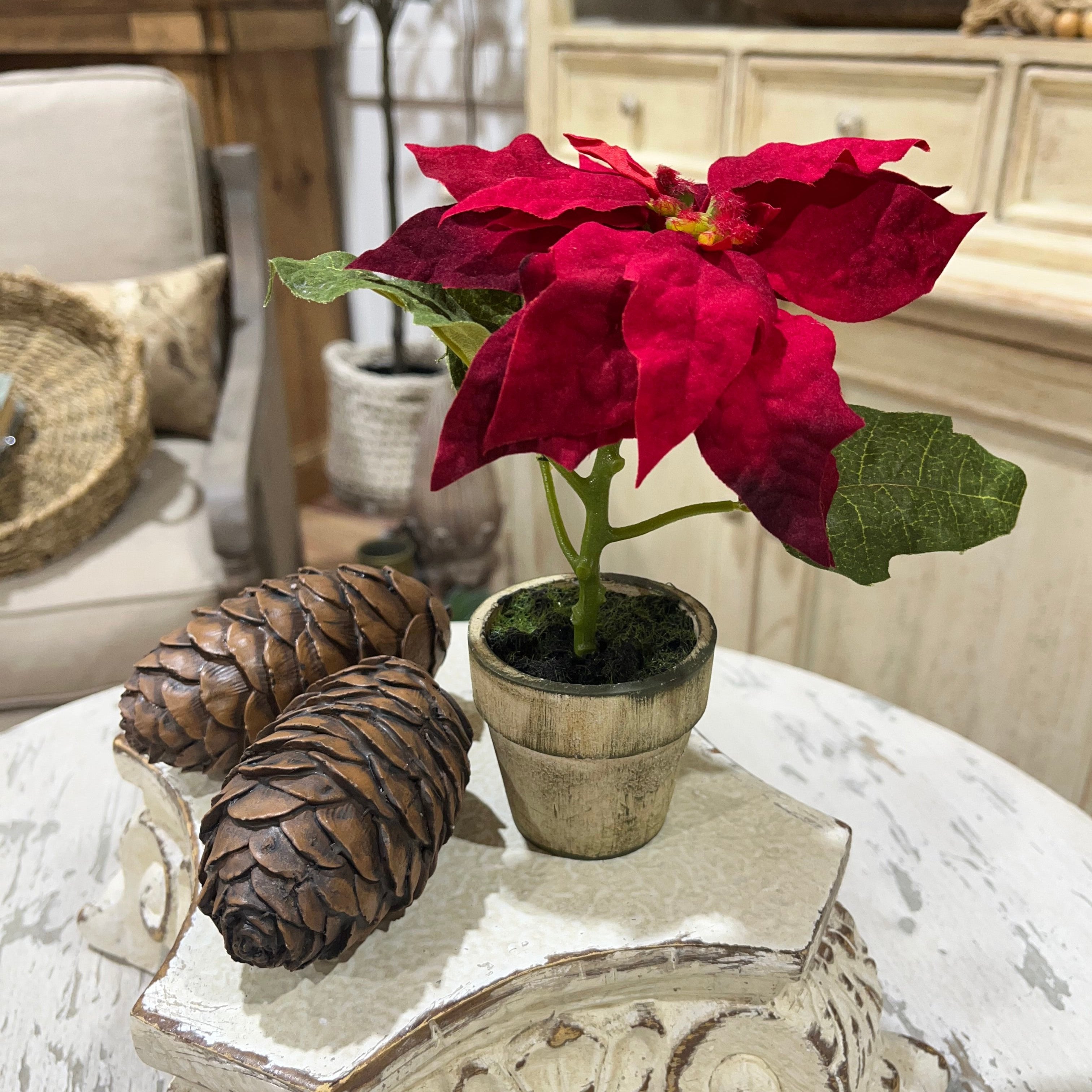 Our potted red poinsettia features a vibrant red color and is perfect for adding a festive touch to your home or office. It's an easy and beautiful way to bring the holiday spirit indoors.