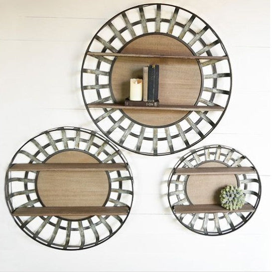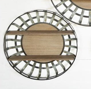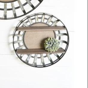 This round wall shelf features rustic wood and metal construction, providing both a charming aesthetic and sturdy support for your home decor. Crafted with expert precision, it offers a unique and functional way to display your favorite items, adding warmth and character to any room.