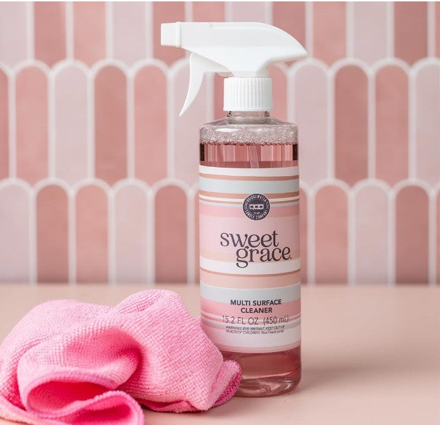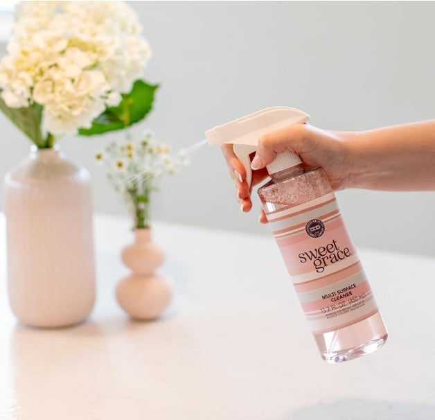 Cleaning just got a whole lot sweeter! Your favorite fragrance is now your favorite cleaning buddy, too. Our Sweet Grace Multi Surface Cleaner is ready to tackle grease and grime on any non-porous surface. The 15.2 fl oz spray bottle is filled with gorgeous fragrance, but free of parabens, sulfates, formaldehyde, phthalates, and ammonia.