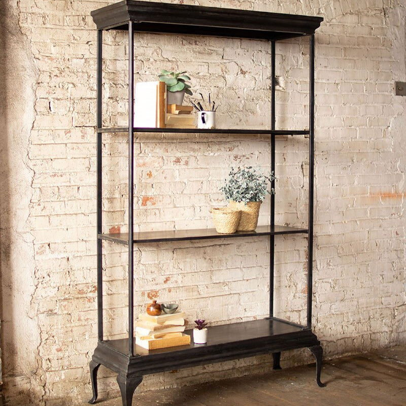 Standing at over 6 ft. tall, this shelving unit is tall and sturdy! The black color paired with the simplistic design make this piece a great option for any style and space.